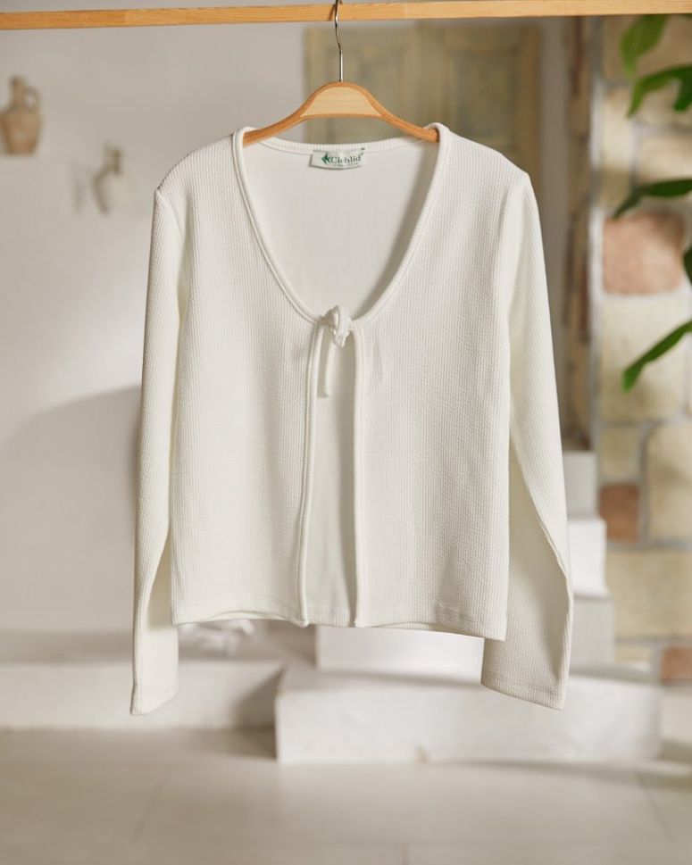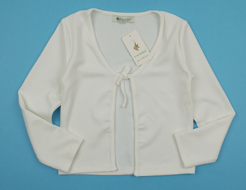 Бяла рипс жилетка завръзваща се на лицевата част.