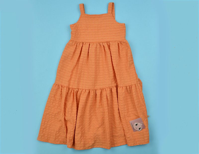 Оранжев цвят ефирна рокля с тънки презрамки.