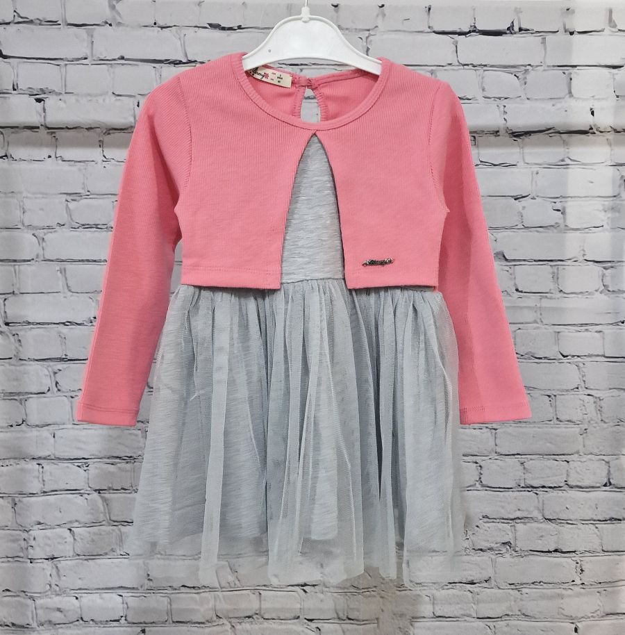 Сива рокля с пришито розово рипсено болеро.