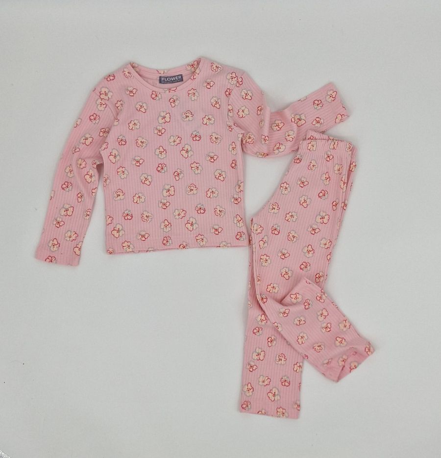 Комплект от розова рипс пижама на десен цветенца.