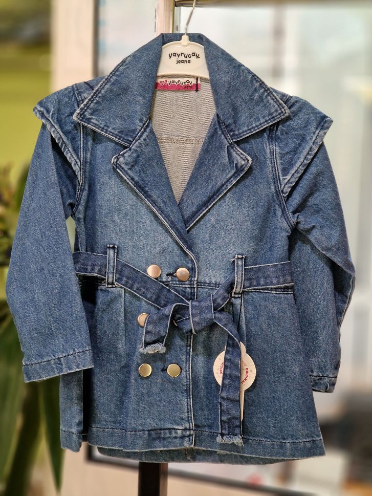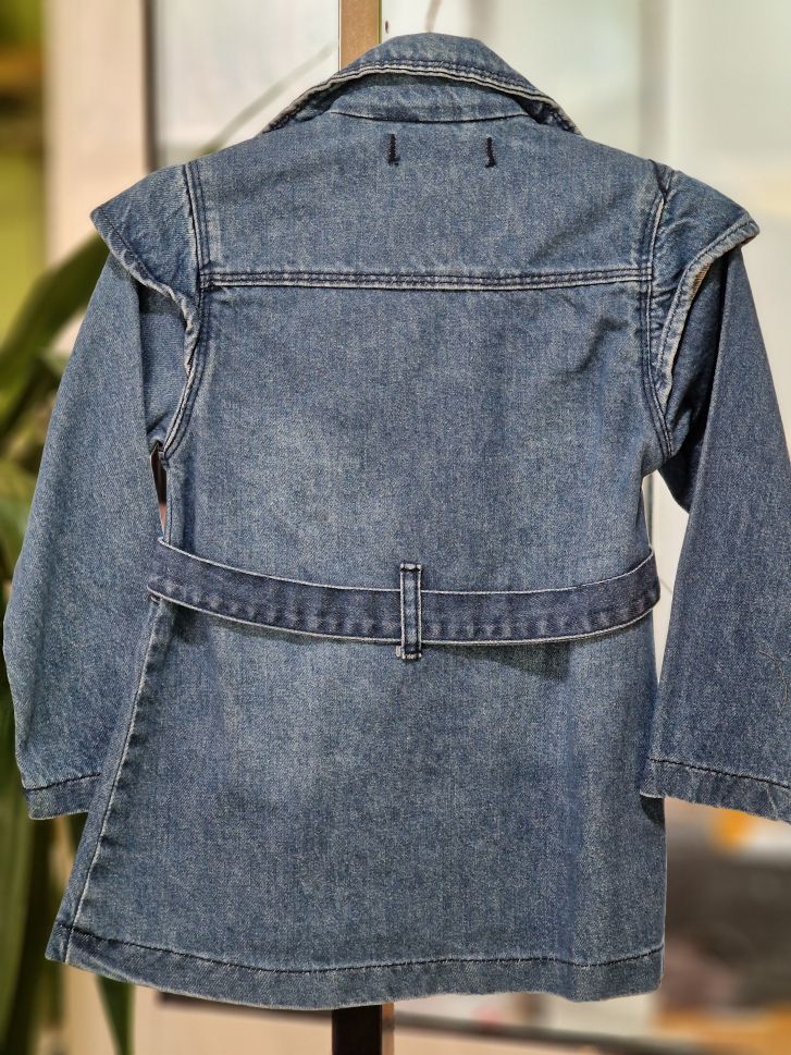 Дънково яке тип шлифер с коланче на талията.