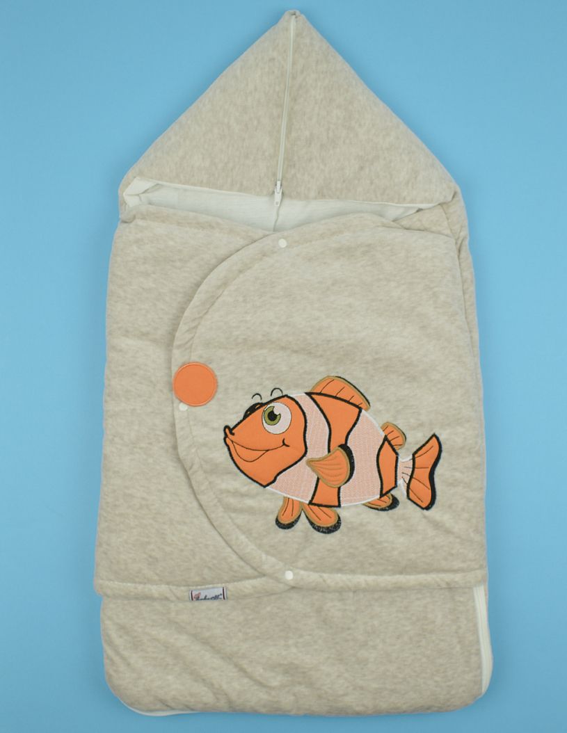 Бебешко чувалче за количка с апликация и закопчаване с тик-так копчета на лицевата чакст.