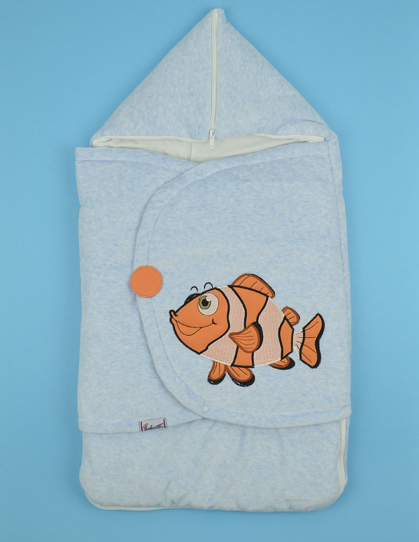 Бебешко чувалче за количка с апликация и закопчаване с тик-так копчета на лицевата чакст.