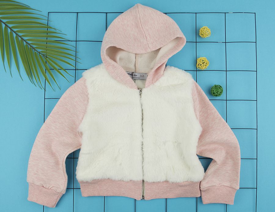 Розов ватиран суитчер с бял пух.