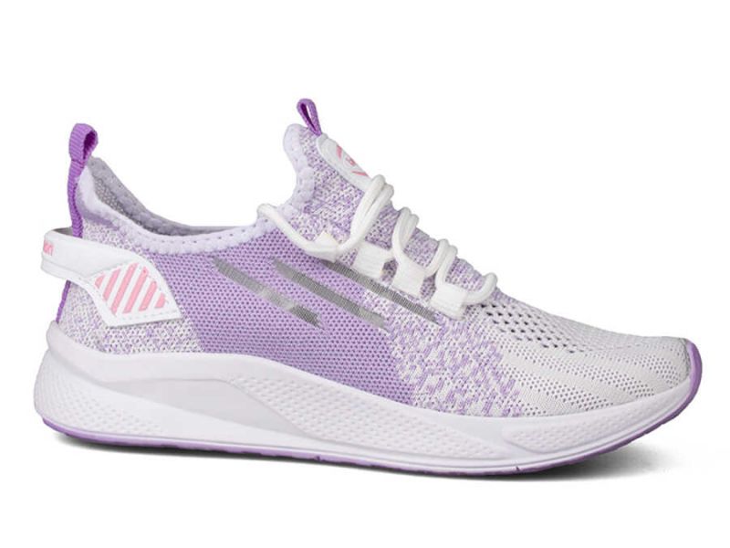 Бяло/лилави текстилни маратонки .Завързване с връзки.